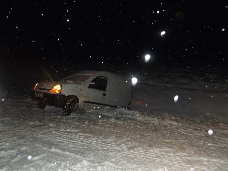 Verkehrsunfall alamiert. Ein PKW rutschte auf eisiger Fahrbahn in den Durchlass und blieb dort hängen. Die Person blieb unverletzt.