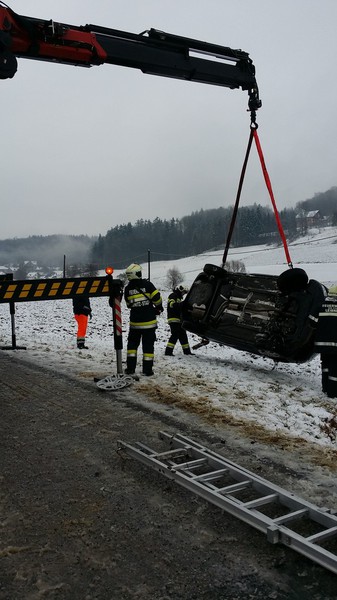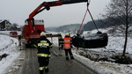 Ein 25-jähriger Südsteirer verlor auf verschneiter Fahrbahn die Kontrolle über seinen Pkw und rutschte in einen Bach, wo das Fahrzeug auf der Seite zum Liegen kam. Der Lenker wurde dabei eingeklemmt, konnte sich aber selbst befreien. Nach der Erstversorgung durch das Rote Kreuz wurde er unterkühlt und mit leichten Verletzungen ins LKH Wagna eingeliefert, wo er stationär aufgenommen wurde. Das Unfallfahrzeug musste mit einem Kranwagen aus dem Bachbett geborgen werden. Rund 35 Einsatzkräfte der Freiwilligen Feuerwehren St. Ulrich am Waasen, Heiligenkreuz am Waasen, Allerheiligen bei Wildon und Leibnitz waren damit beschäftigt.